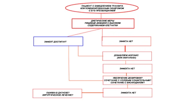 Алгоритм лечения пациентов с замедлением транзита по толстой кишке приведен на Рис. 2.