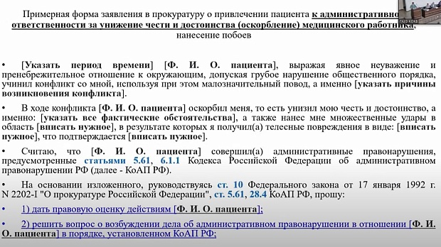 Актуальные юридические аспекты защиты медицинских работников.